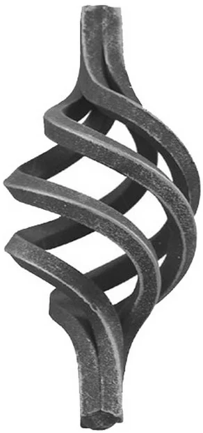 Ciekawa alternatywa dla klasycznych koszyków. **Element spiralny** wykonany z płaskowników lub prętów, które tworzą dynamiczną, skręconą formę. Nadaje balustradzie nowoczesnego, nieco abstrakcyjnego charakteru, zachowując przy tym tradycyjną technikę wykonania.