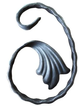 Prezentujemy pojedynczy, kunsztownie wygięty pręt stalowy, zakończony liściem akantu – klasykę kowalstwa artystycznego.