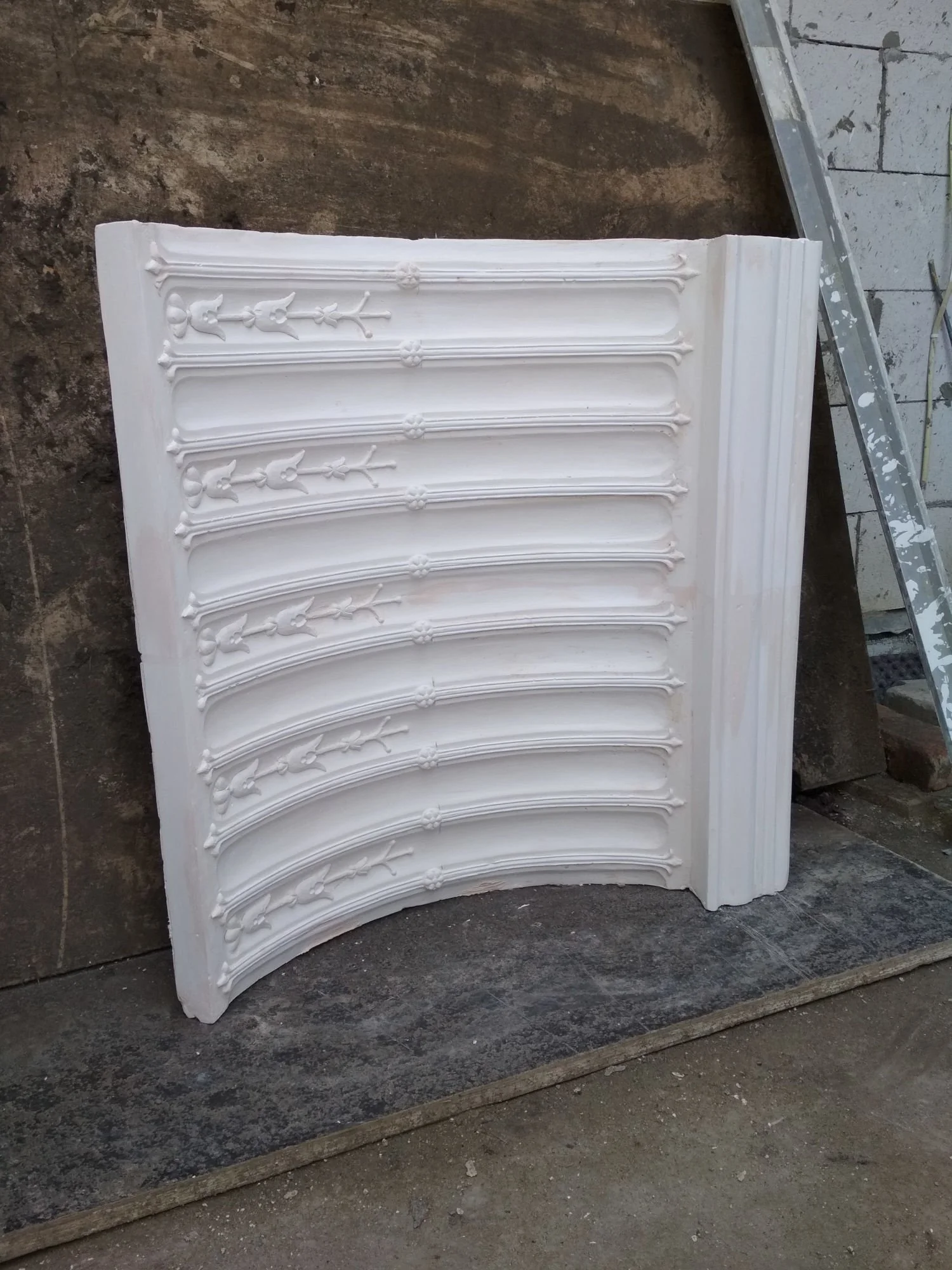 Niestandardowy element sztukateryjny przeznaczony do montażu na powierzchniach zakrzywionych (np. okładzina betonowego słupa) lub jako fragment wnęki.