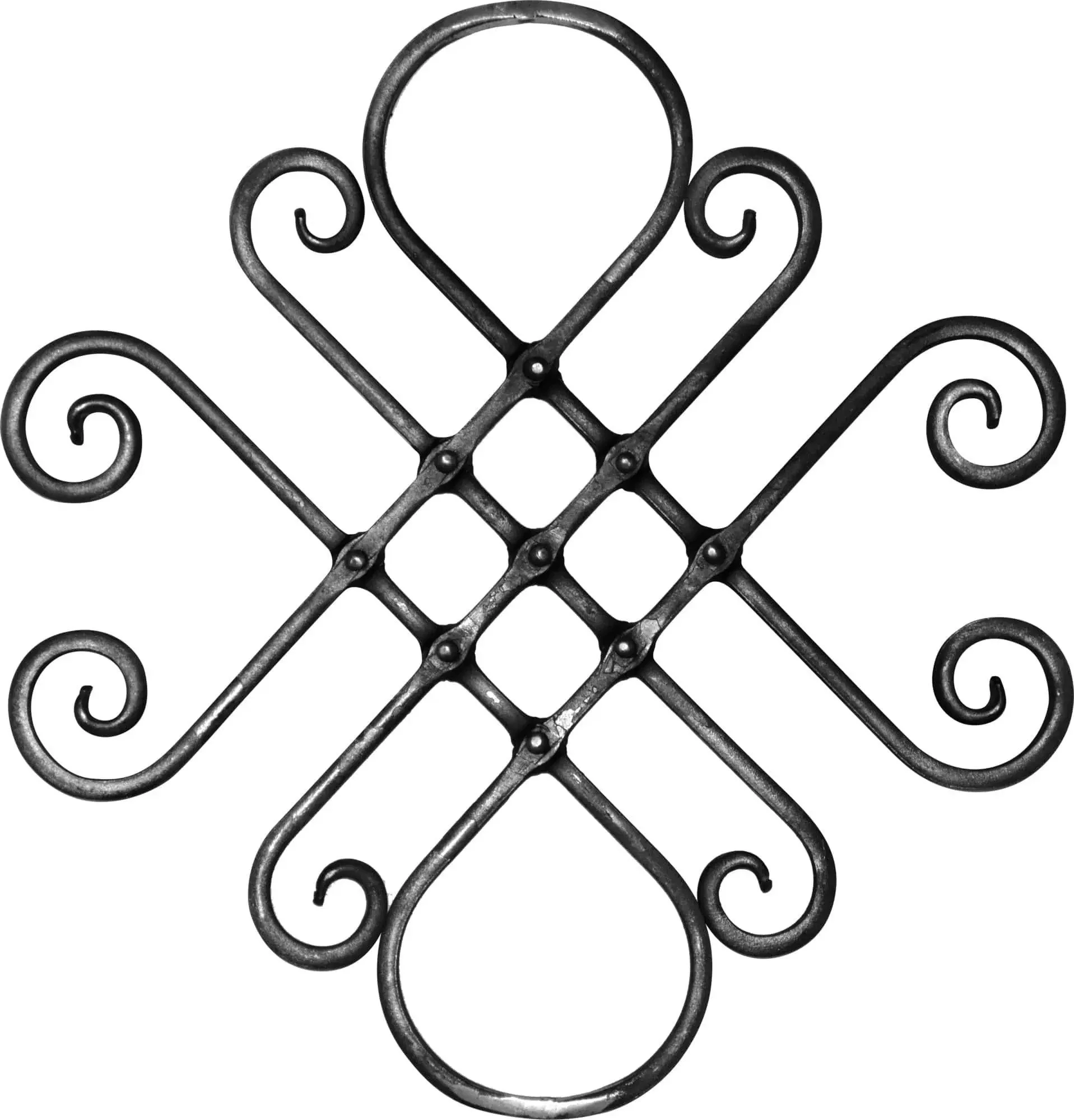 Ten kuty moduł to klasyka zdobnictwa kowalskiego. Idealnie nadaje się jako centralny punkt przęseł bramowych lub balustrad balkonowych.