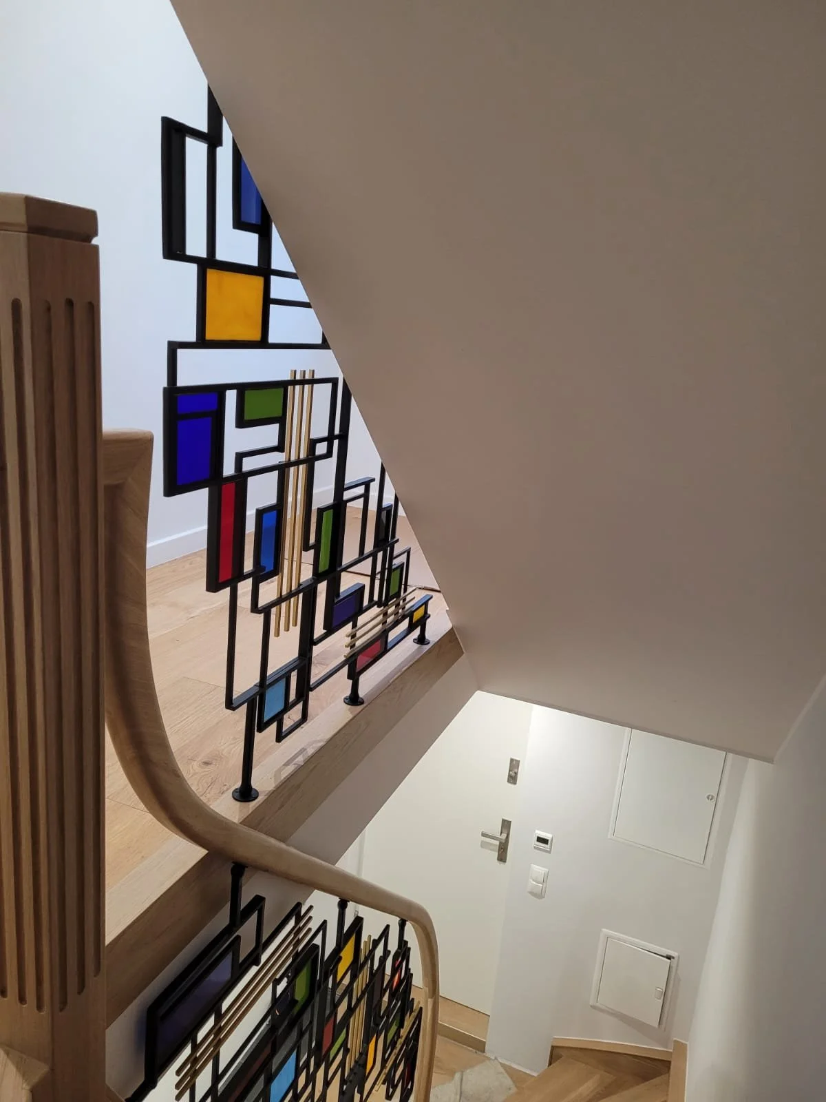 To ujęcie podkreśla precyzję montażu szklanych elementów w kutej konstrukcji, która zapewnia bezpieczeństwo i niespotykany efekt wizualny.