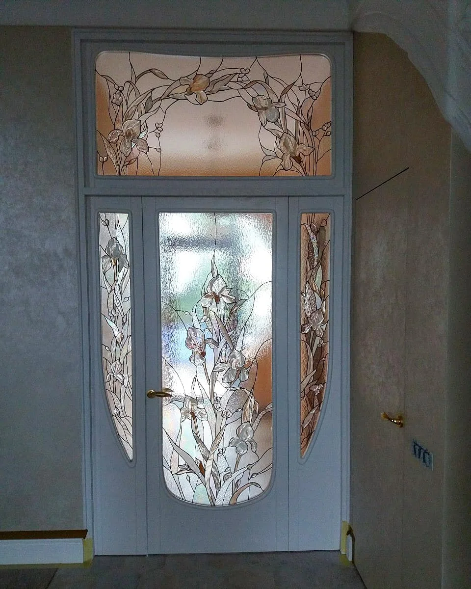 Drzwi Zewnętrzne z Witrażem - Secesyjne Irysy