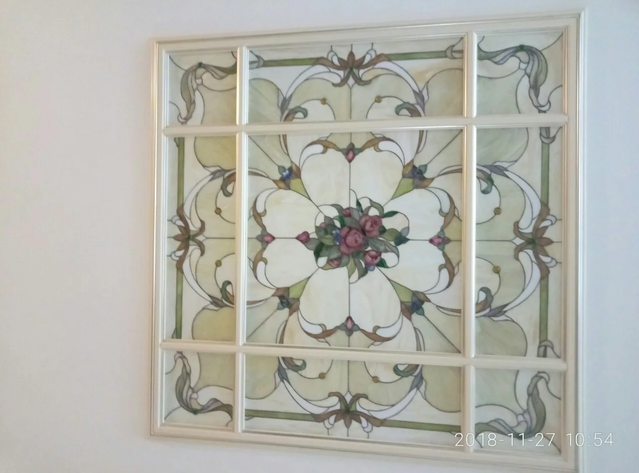 Kwadratowy Panel Witrażowy - Róże w Geometrii